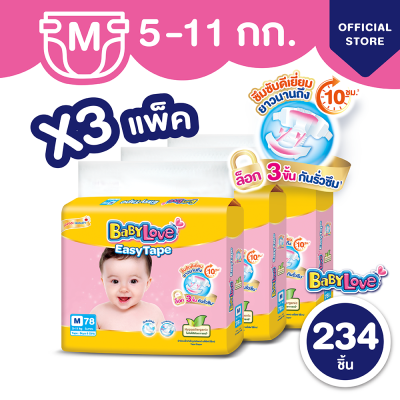 [โฉมใหม่ ขายยกลัง] BabyLove Easy Tape เบบี้เลิฟผ้าอ้อมแบบเทป รุ่นอีซี่เทป ไซส์ M 3 แพ็ค 234 ชิ้น (แพ็คละ 78 ชิ้น)