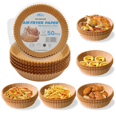 แผ่นรองกระดาษแบบใช้แล้วทิ้งหม้อทอด Air Fryer กระดาษรองอบสำหรับทำอาหารนึ่งเครื่องทอดไมโครเวฟ50ชิ้นกระดาษรองอบกันลื่นทรงกลม