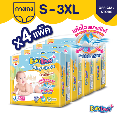 เลือกไซส์ก่อนกดสั่งซื้อ! [โฉมใหม่ ขายยกลัง] BabyLove Playpants เบบี้เลิฟกางเกงผ้าอ้อมเพลย์แพ้นท์ ยกลัง 4 แพ็ค S - XXXL