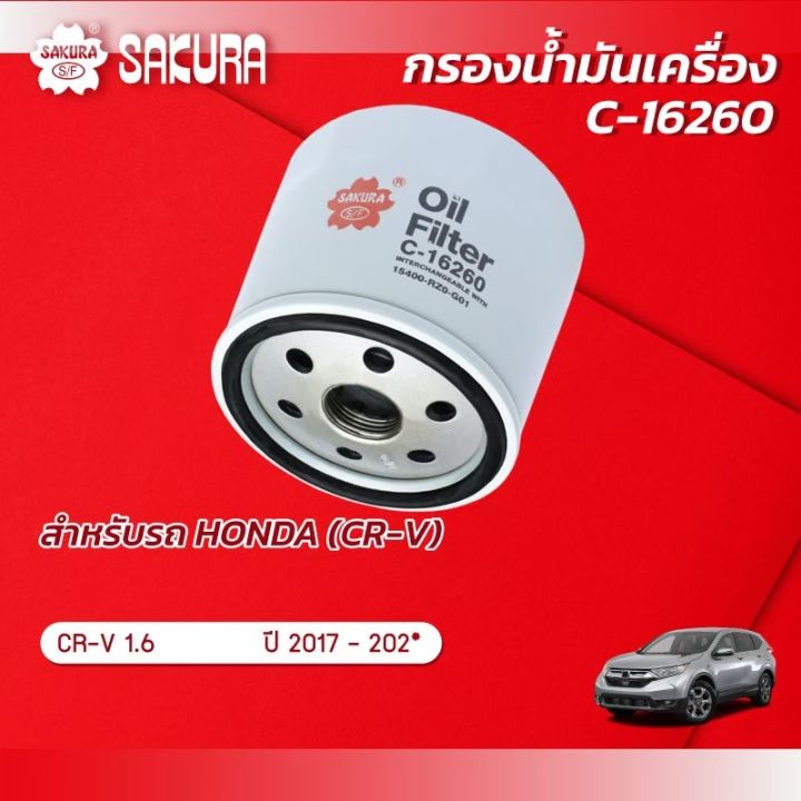 กรองน้ำมันเครื่องซากุระ ฮอนด้า ซีอาร์-วี เครื่องยนต์ 1.6 ปี 2017-2024 รหัสสินค้า C-16260