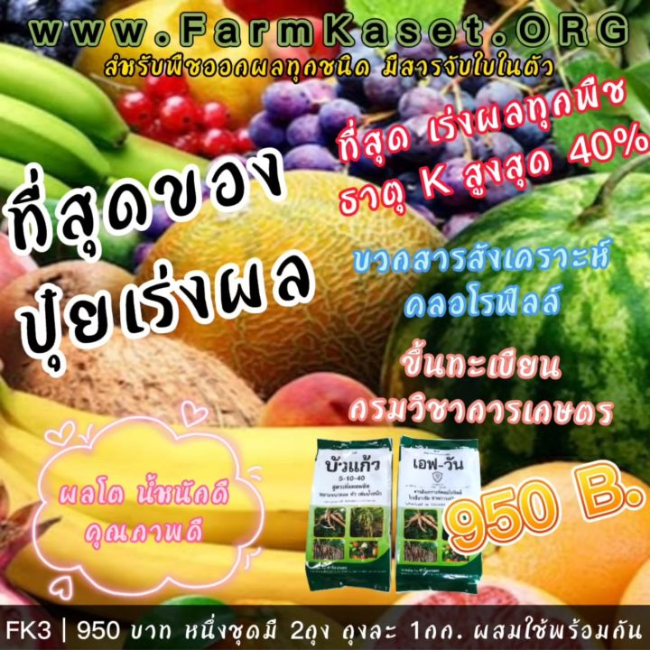 ที่สุดของ ปุ๋ยเร่งผล สำหรับพืชออกผลทุกชนิด ให้ โพแทสเซียม มากถึง 40% เร่งผลโต น้ำหนักดี โปรดอ่านวิธีใช้