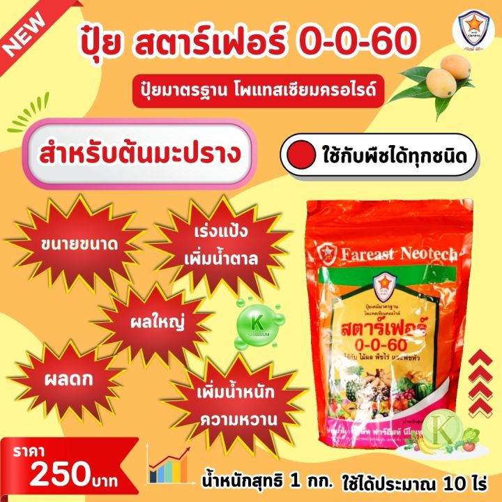 มะปราง ผลดก ขยายขนาด เพิ่มน้ำหนัก เพิ่มคุณภาพ ผลผลิต ด้วย ปุ๋ยโพแทสเซี่ยมคลอไรด์ สตาร์เฟอร์ 0-0-60