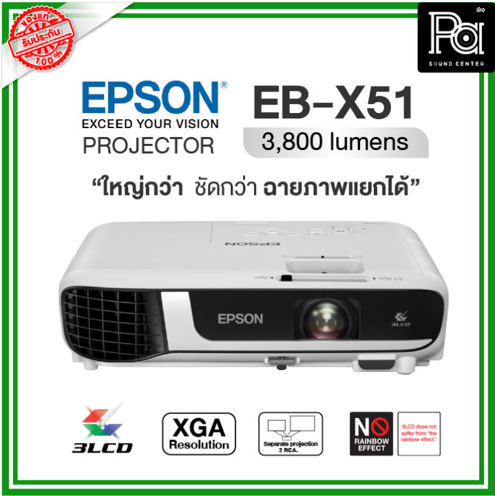 Epson EB-X51 โปรเจคเตอร์ XGA 3LCD ใหญ่กว่า ชัดกว่า ฉายภาพแยกได้ เครื่องฉาย โปรเจคเตอร์ EB-X51 เครื่องฉายสำหรับห้องประชุม (3800 lm / XGA)พีเอ ซาวด์ เซนเตอร์ PA SOUND CENTER